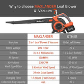 MAXLANDER 2 in 1 Cordless Leaf Blower & Vacuum Cleaner with Bag