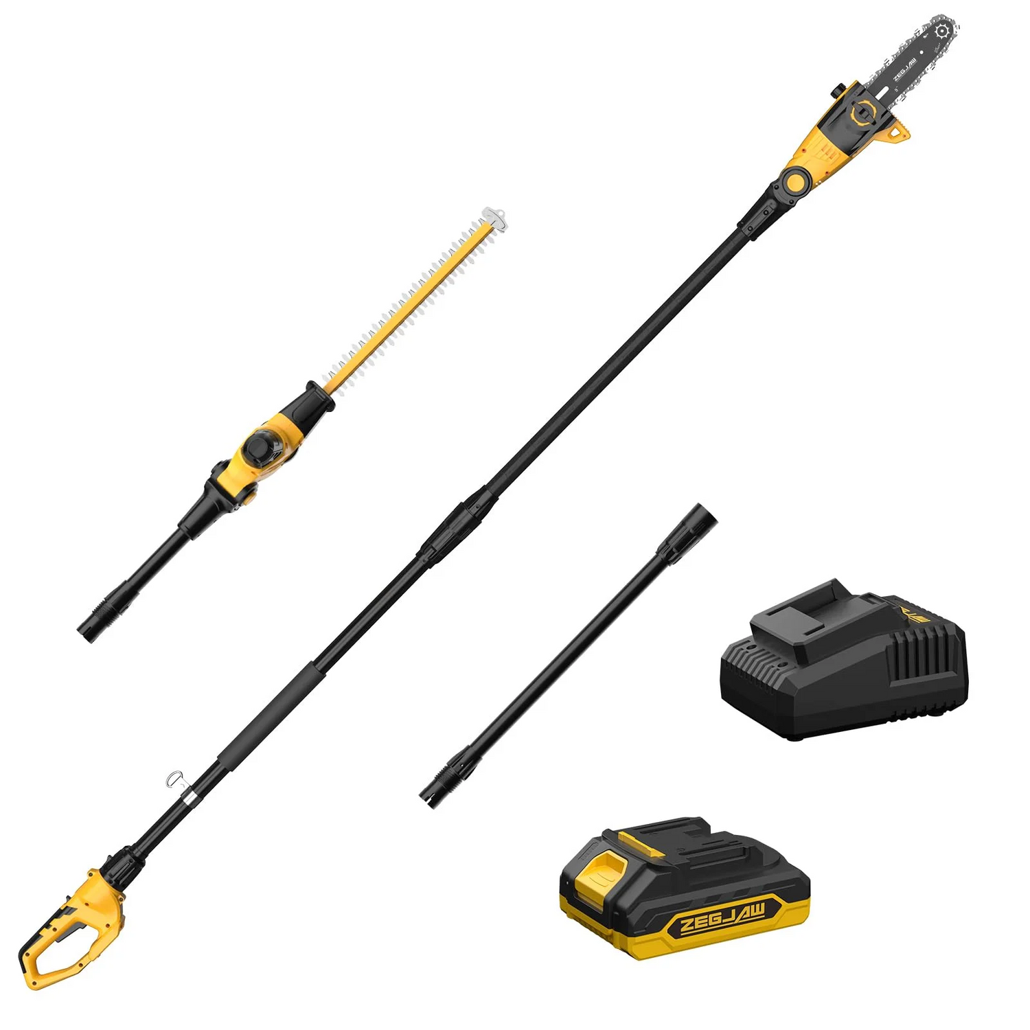 ZEGJAW Pole Saw 8-Inch Cordless Tree Trimmer and 18-Inch Pole Hedge Trimmer 2-In-1,15-Feet Max Reach, Auto Oiling, Telescoping Pole Chainsaw with 2.0Ah Battery & Charger